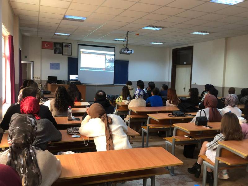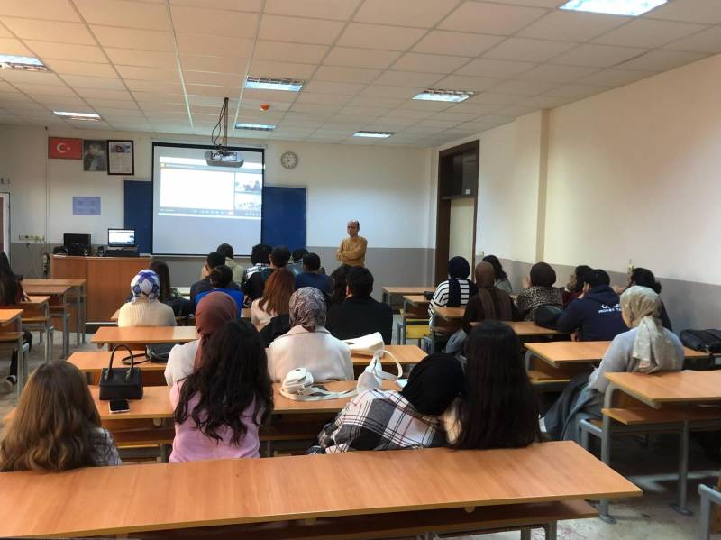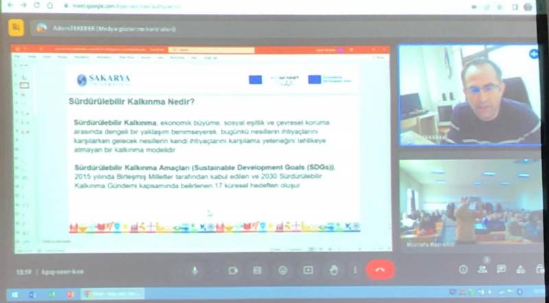 Gazi Üniversitesi Teknoloji Fakültesi Bilgisayar Mühendisliği Bölümü'nde görev yapan ve projemiz ekibi üyesi Doç. Dr. Adem Tekerek, “Dijitalleşme ve Yapay Zekanın Sürdürülebilirlikteki Rolü” başlıklı sunumunu gerçekleştirdi. Sunumunda dijitalleşme ve yapay zeka teknolojilerinin çevresel, ekonomik ve sosyal sürdürülebilirlik hedeflerine ulaşmadaki katkılarını ele alan Tekerek, bu teknolojilerin enerji verimliliği, kaynak yönetimi ve karbon ayak izinin azaltılmasındaki kritik rolüne vurgu yaptı. Katılımcılar, sürdürülebilirlik için yapay zeka uygulamalarının gerçek hayat örnekleriyle nasıl devreye alındığını öğrenirken, dijitalleşmenin sunduğu fırsatlar ve karşılaşılan zorluklar hakkında da kapsamlı bilgiler edindi. Sunumun ikinci bölümünde ise sürdürülebilir okullarda kullanılan dijital platformlar ve yapay zeka uygulamaları öğrenciler ile tartışıldı. Sunum, teknolojinin sürdürülebilir bir gelecek inşasındaki stratejik önemine dair farkındalık yaratırken, öğrenciler ve eğitimciler arasında interaktif bir tartışmaya da olanak sağladı.
